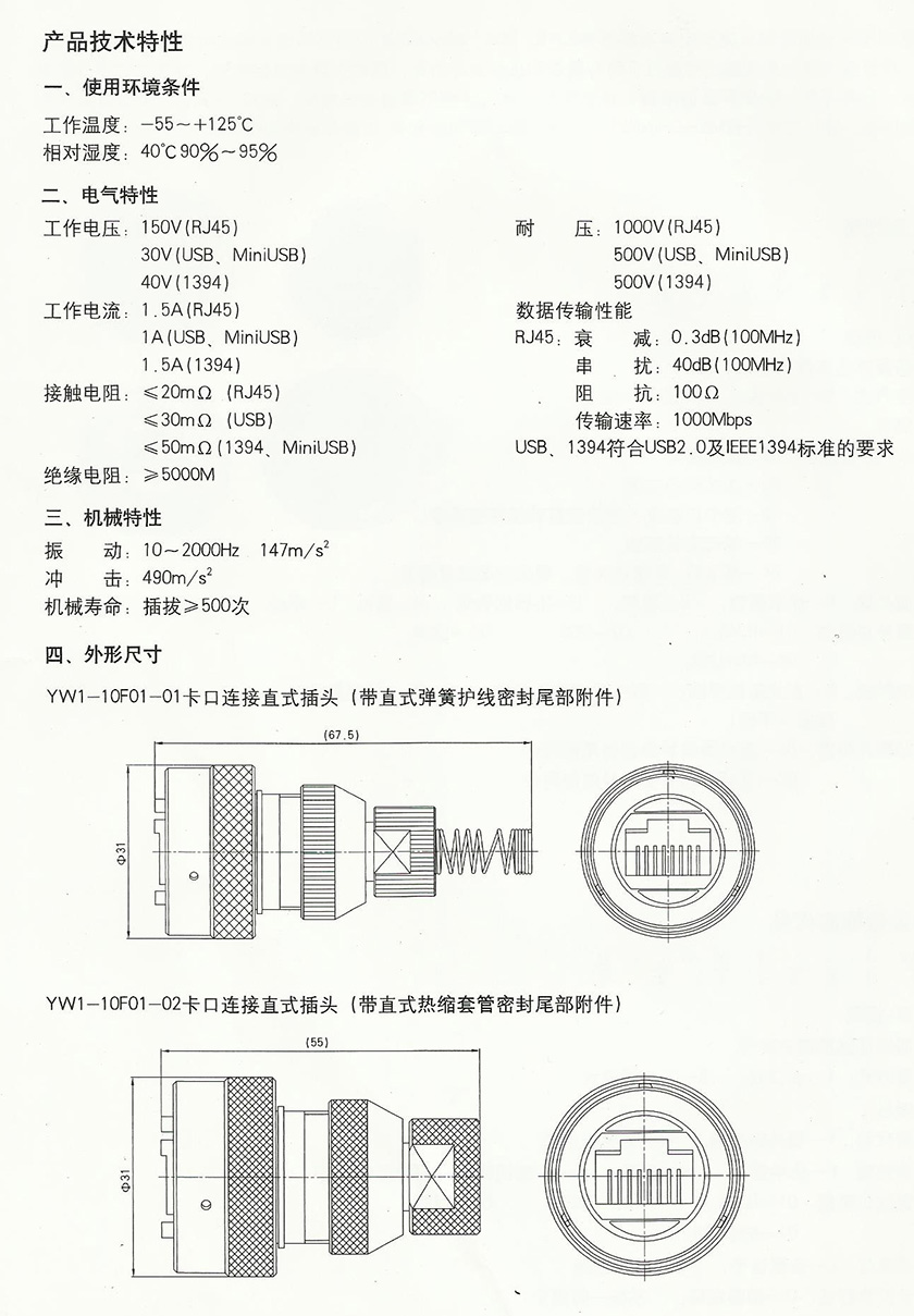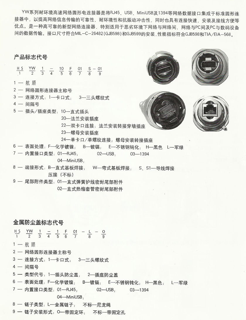 YW系列耐環(huán)境高速網(wǎng)絡(luò)圓形航空插頭