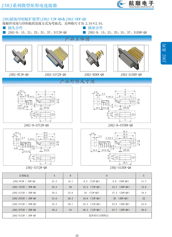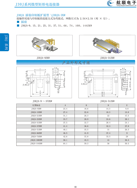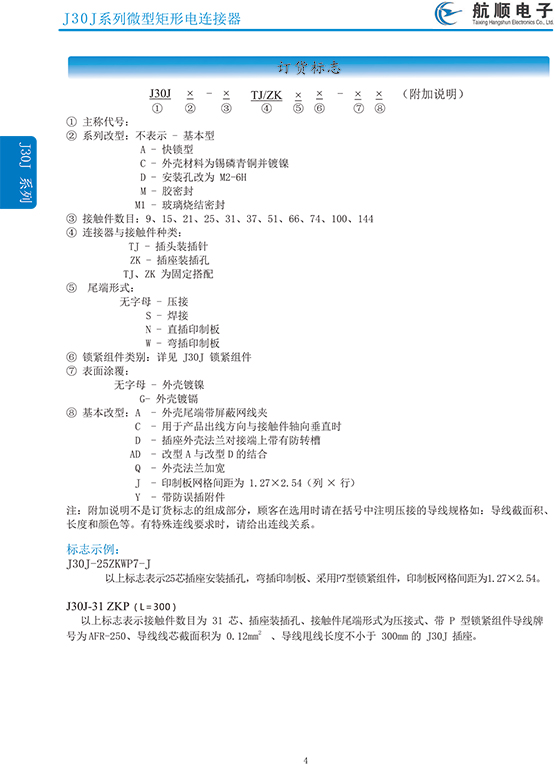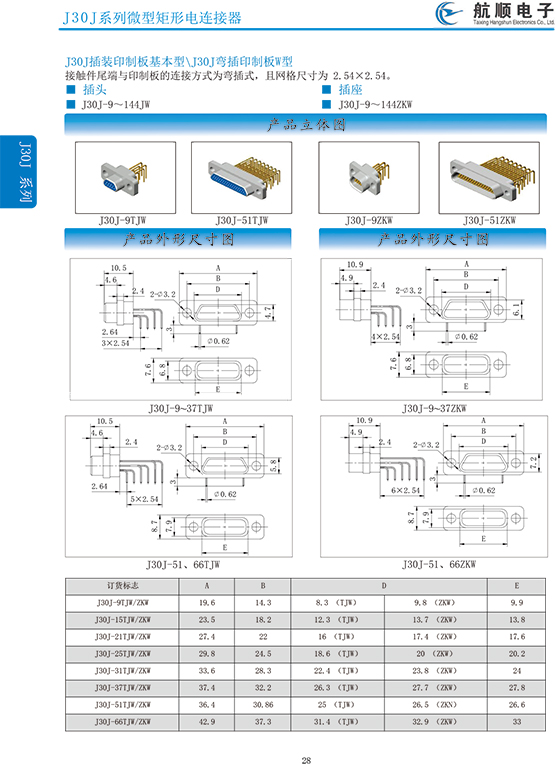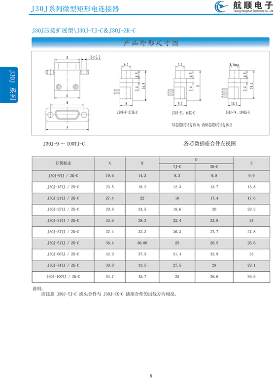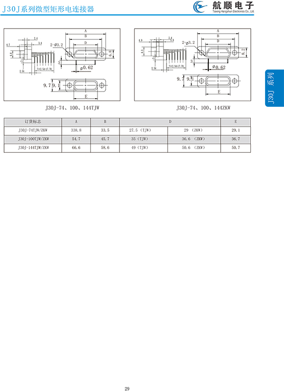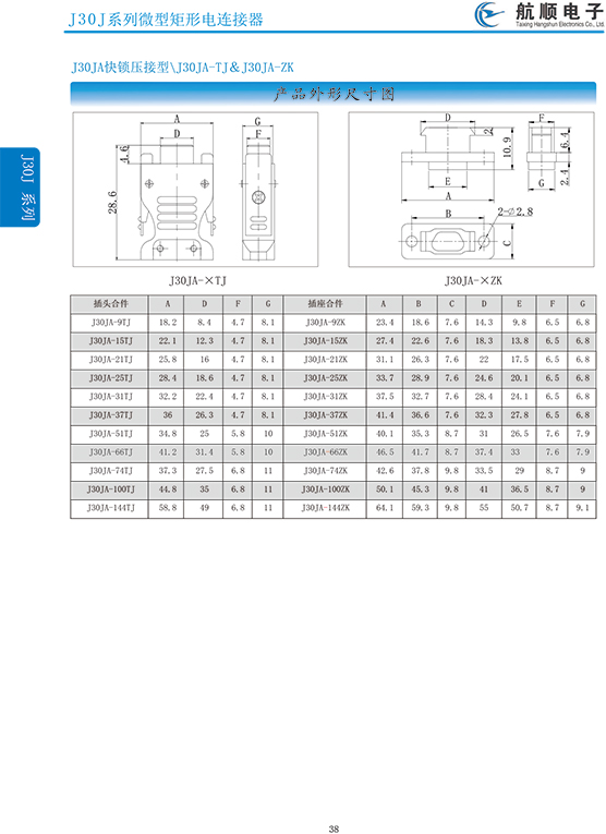 符合GJB2446《外殼定位超小型矩形電連接器總規(guī)范》(相當(dāng)于美軍標(biāo)MIL-C-83513),可與美國(guó)MDM系列產(chǎn)品和國(guó)內(nèi)同類產(chǎn)品互換,在J30系列產(chǎn)品的基礎(chǔ)上增 加了鋁合金外殼與各種鋁合金尾夾;采用絞線式插針 (俗稱麻花針),單個(gè)接觸件接觸點(diǎn)達(dá)七個(gè),提高了產(chǎn)品的接觸可靠性;采用1.27mm網(wǎng)格,接觸件密度大、體積小、重量輕;現(xiàn)有9、15、21、25、31、37、51、66、74、100芯共十種型譜可供選用;適用導(dǎo)線線芯 截面積為0.07~0.15mm2,尾端可以根據(jù)用戶要求進(jìn)行 布線;本產(chǎn)品的鎖緊組件按與產(chǎn)品組裝在一起提供,如不需鎖緊組件請(qǐng)?jiān)诤贤凶⒚?;本系列產(chǎn)品滿足GJB2446《外殼定位超小型矩形電連接器總規(guī)范》的 要求;本系列產(chǎn)品的執(zhí)行標(biāo)準(zhǔn)如下:Q/ZHDZ GC-18《J30J系列微矩形電連接器詳細(xì)規(guī)范》。